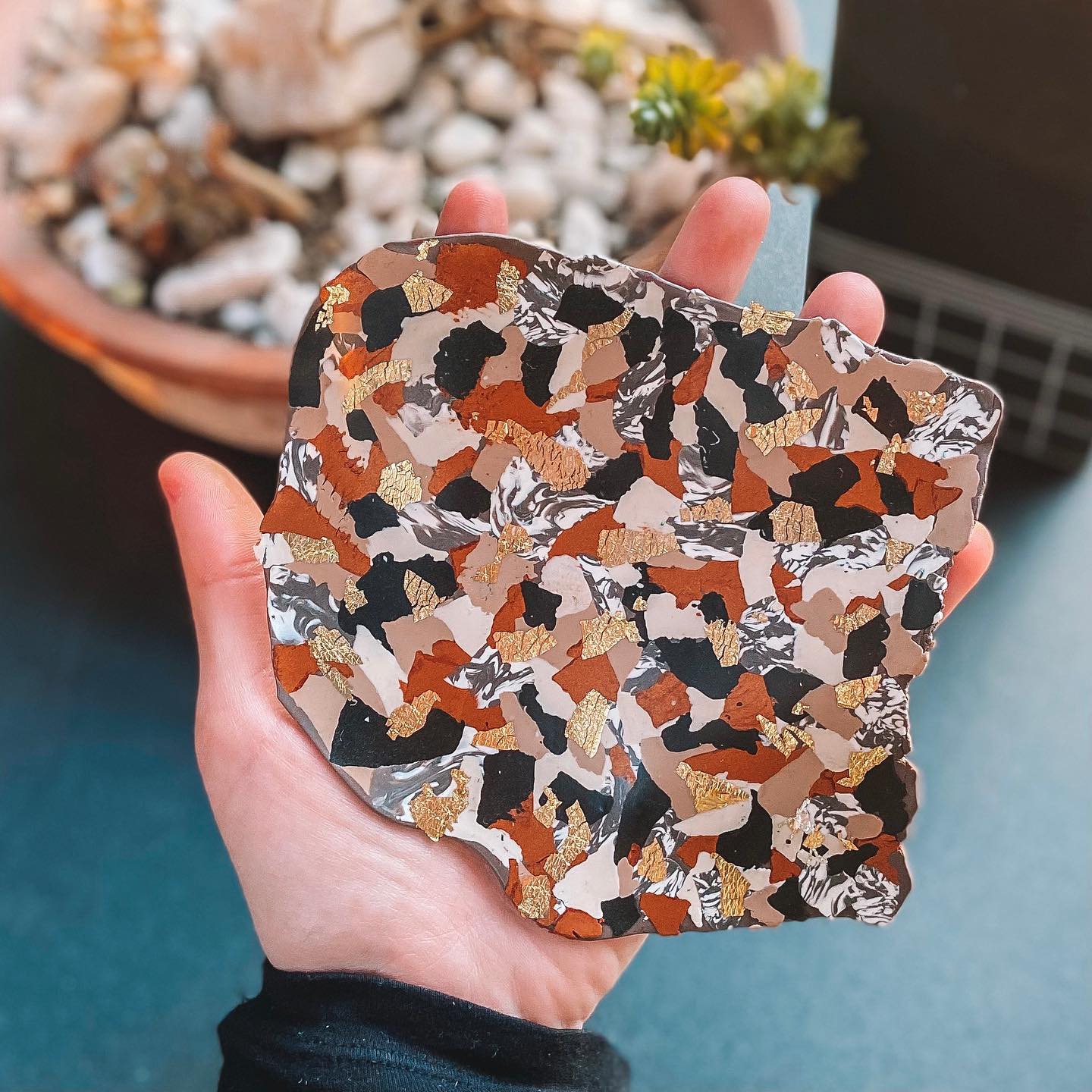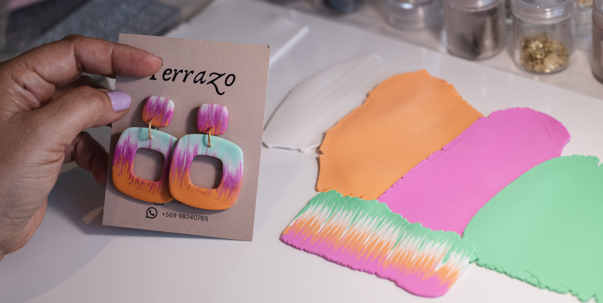 El año 2022 hice una certificación en arcilla polimérica, para trabajar nuevas técnicas que permiten mejores resultados en la creación de accesorios, joyas y decoración. Ha sido toda una experiencia interpretar y crear para ustedes piezas que resalten su belleza natural y sentir que se identifican con un diseño Terrazo.